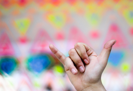Photograph of a human hand making a symbol
