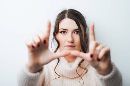 brunette woman making a frame by her hands