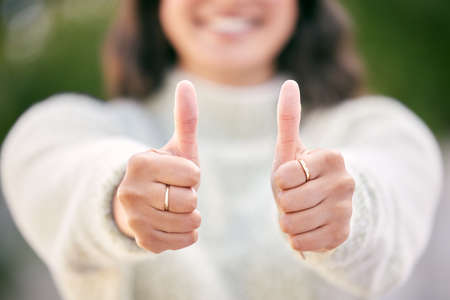 Love it, keep it up. an unrecognisable businesswoman showing thumbs in a modern office.