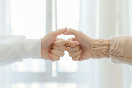 The diversity business hand fist bump symbolises teamwork, collaboration or solidarity in the workplace. A group of people and hand sign symbolise community, cooperation or inclusion.