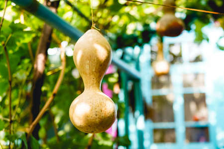 Mature calabash hanging in the garden in autumn