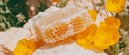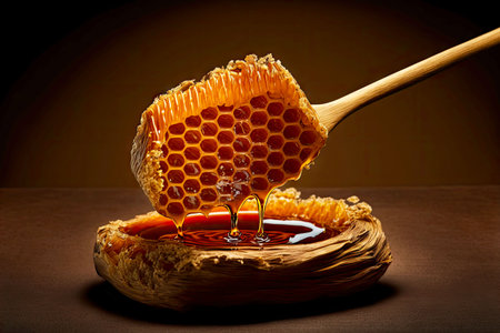 AI Generated. Sweet Honeycomb and Honey Drizzle for Food Blog