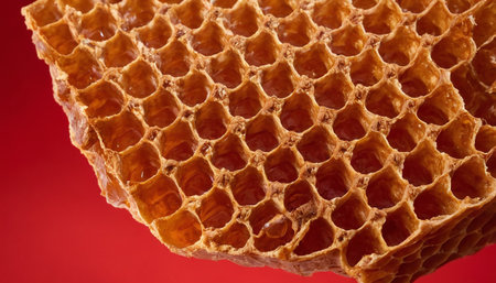 the honeycomb on the red plate close-up