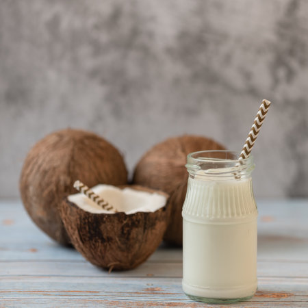 Vegan coconut milk in a bottle