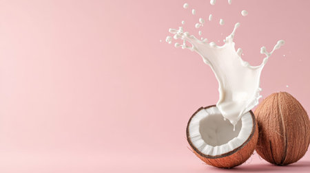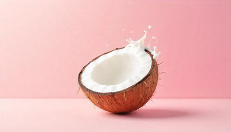 Coconut splash on pastel pink background captures freshness