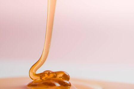 Thick, viscous honey of saturated color flows down.