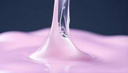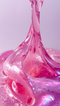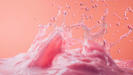 A dynamic pink liquid splash captured mid-motion against a soft pastel background, creating a vibrant and playful scene. Ideal for abstract and creative themes.