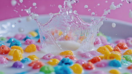 A high-speed capture of liquid splash in mid-air, displaying vibrant colors and intricate textures. Ideal for themes of energy, fluid dynamics, and abstract art.