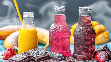 AI Generated. Two milkshakes with sprinkles served in tall glasses on a wooden table