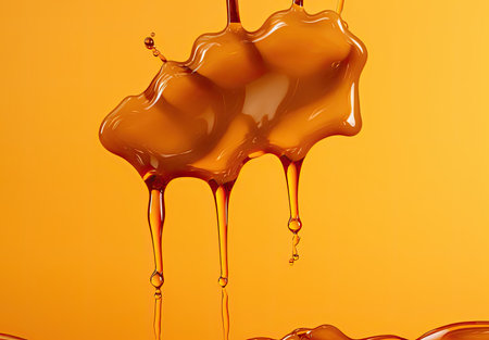 Experience the mesmerising sight of delicate honey drops against a vivid yellow setting.
