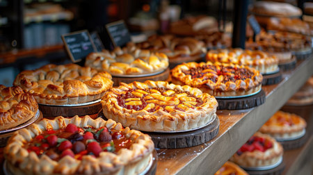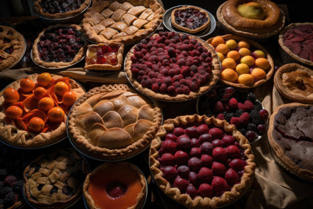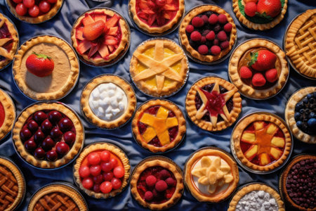 pies and tarts, with fruit filling that is visible through the glassy pastry crusts, created with generative ai