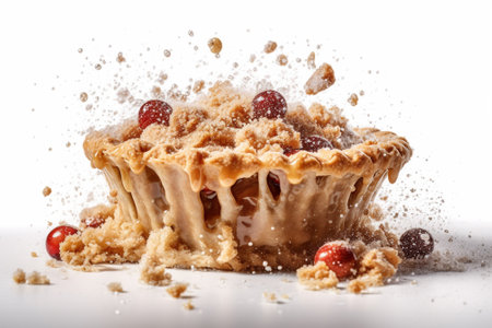 Cherry pie with splashes isolated on white background, close up