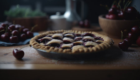 Homemade sweet pie, fresh berry fruit, gourmet baked pastry, rustic kitchen generated by artificial intelligence