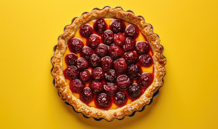 An image of a scrumptious pie created by hand and seen from above. Generative AI