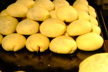 Korean Sweet Potato Mochi Bread made from mochi bread with Purple Sweet Potato inside. Food photography concept for background.