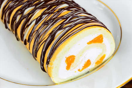 Orange roll cake on plate