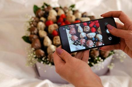 Taking a photo of make chocolate with smart phone