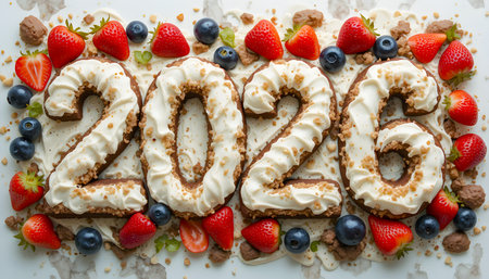 2020 made from healthy food on pastel blue background, Healhty New year resolution diet and lifestyle