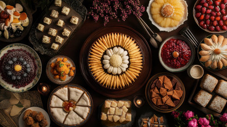 A collection of Northern desserts displayed on a beautifully arranged table, highlighting their colors and intricate designs.