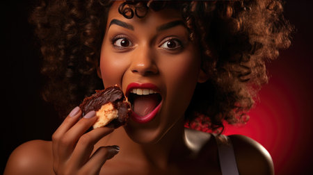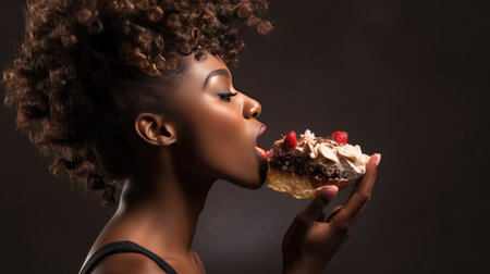 Irresistible indulgence: Capture the joy as a black woman takes a huge bite of a fancy dessert