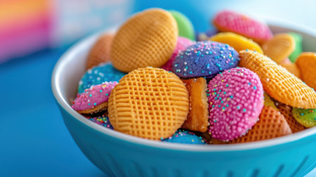Colorful cookies and crispy wafers on a dish, bright and inviting with playful presentation