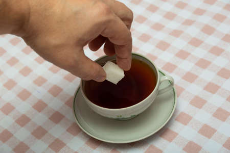 add a cube of white sugar to a cup of tea