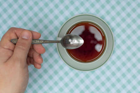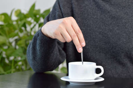 mug with a drink adding sugar cafe rest