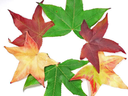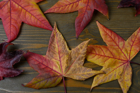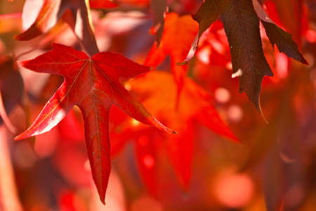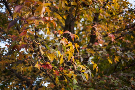 Autumn Liquidambar tree leaves with warm seasonal colors close up