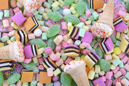 Background filled with colorful assorted sugar candies.