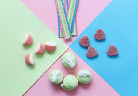 Still life of colorful candies. Flat lay