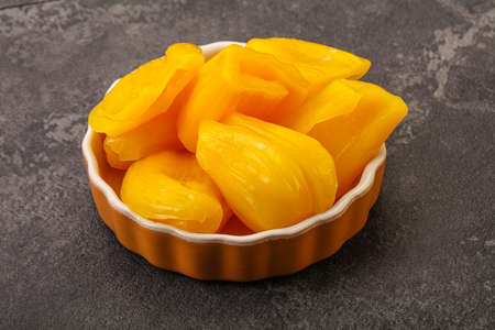 Fresh yellow ripe jackfruit slices sweet delicious. Exotic tropical fruit