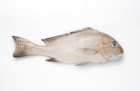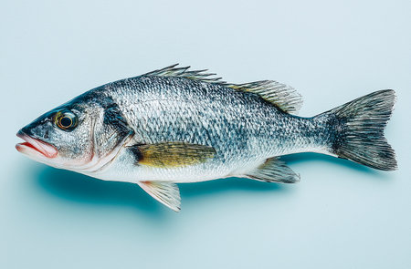 This fresh fish features a detailed body shape, shiny scales, and a distinct fin structure, highlighting its freshness for culinary use in various seafood dishes.