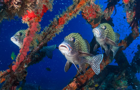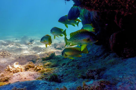 Blackspotted rubberlip, Underwater landscape reef (Plectorhinchus gaterinus) Marine life