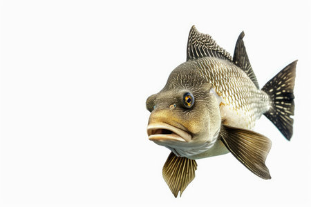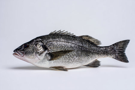 representation of a Black Drum reveals its distinctive body structure and textures emphasizing the fishs intricate details against a plain backdrop.