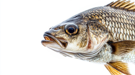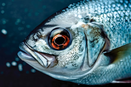 Close-up of a fresh fish, with glistening scales, vibrant hues, and clear eyes, showcasing its pristine quality