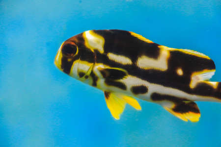The harlequin sweetlips fish in an aquarium closeup