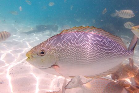 beautiful pretty nice cute funny fish in ocean. sea, aquarium, swimming exotic under depth, colorful biology reef, water salt ecosystem nature flora and fauna