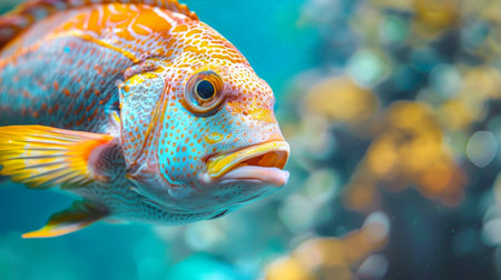 A close up of a fish with its mouth open, AI