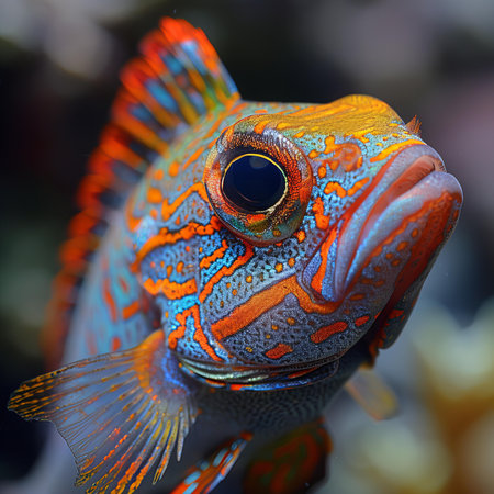Digital artwork of peacock gudgeon fish , close-up portrait , high quality, high resolution