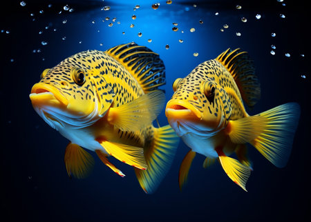 fish with bioluminescent markings in a dark aquatic environment, created with generative ai