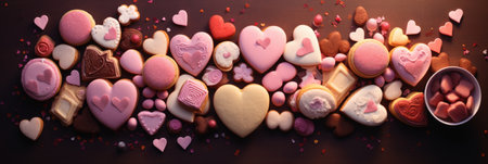 Valentine's Day background with assorted heart shaped chocolate candies