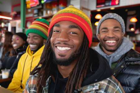 photo of group happy black strong man, generative AI