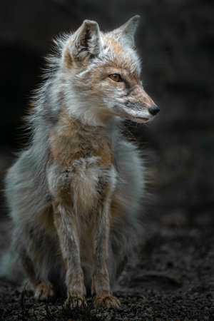 portrait of Korsak or steppe Fox (Vulpes corsac), predatory mammal of the genus of foxes of the canine family
