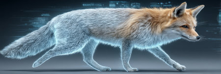 Holographic Fox Futuristic Blend of Nature and Digital Technology, Against a Data-Driven Backdrop.