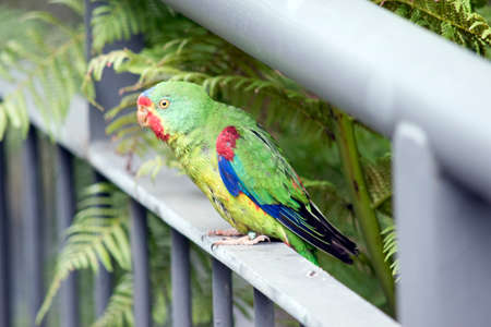 A single rainbow lorikeet waits for food in Victoria, Australia