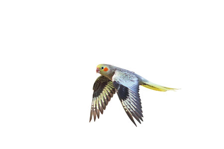 Beautiful of Cockatiel parrot flying isolated on white background.