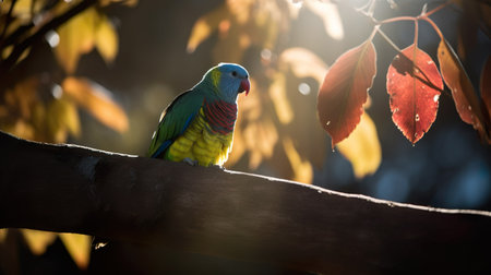 Colorful parrot is sitting in summer sunny day on a branch of tree