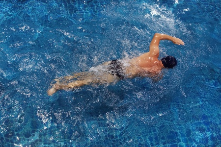 boy swim on swimming pool