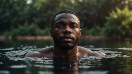 AI Generated. Baptism Handsome black man in worship in the water