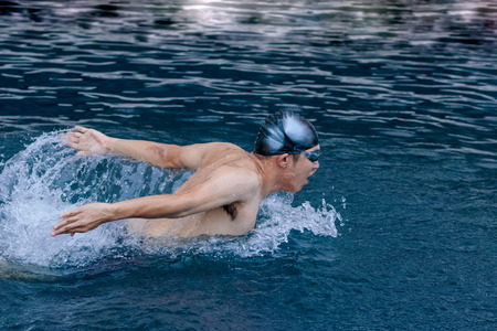 Professional male swimmer swimming in the pool